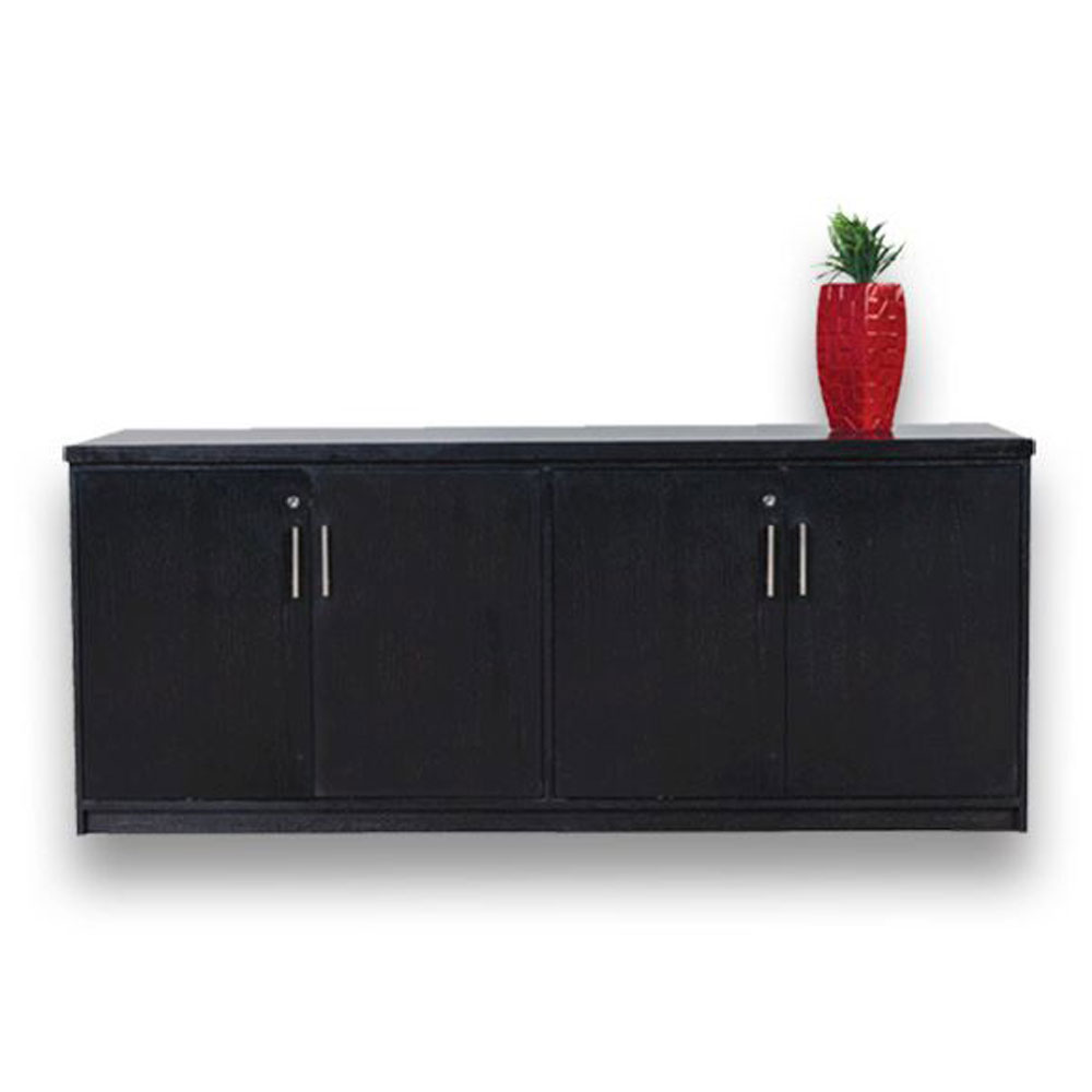2400w x 450d x 900h Veneer Carcass and MDF painted Door Fronts Consists of Open Shelving and 4 Hinge Doors – Lockable Available in: – Dark, Antique Mahogany Veneer – Light, Medium and Dark Cherry Veneer – MDF Duco Colours in Standard Black or Storm Grey,