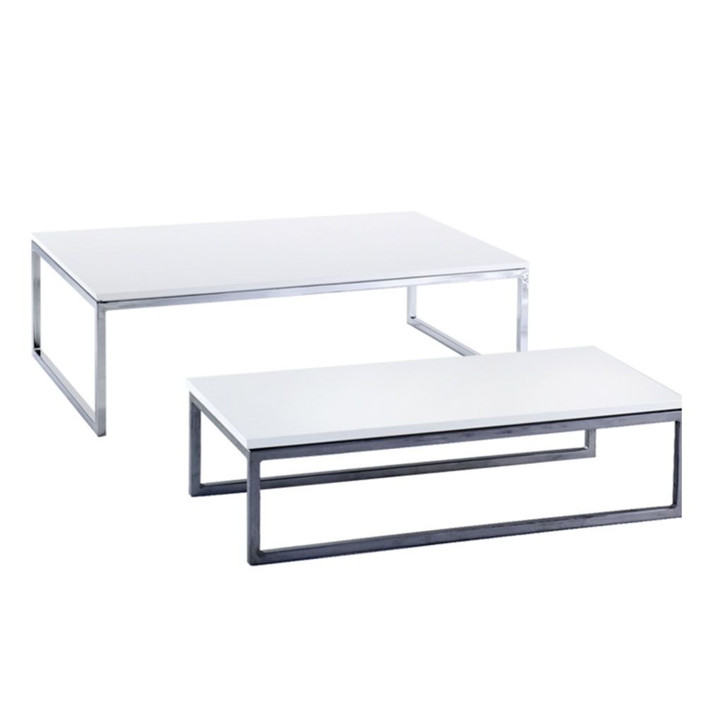 Size: 720 x 720 x 450 high Two level – 10mm tempered glass (BIFMA Aproved) Chrome frame