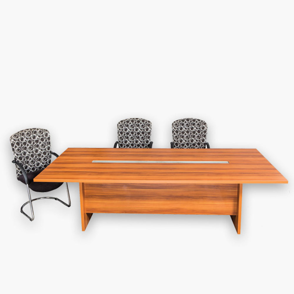 Rectangular / Barrel Shape Boardroom Table 32 x 2mm Top with Impact Edge and Panel Leg and Frosted Glass Inlay