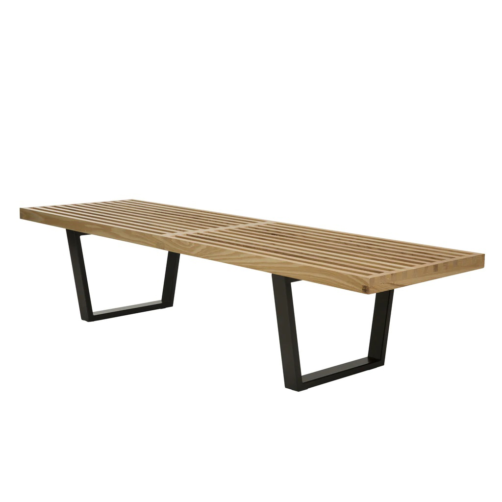Wooden bench with powder coated base.