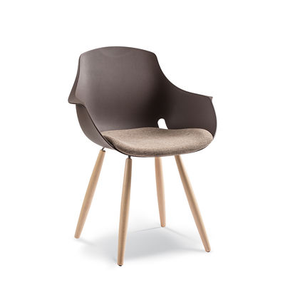 Polyprop shell on solid Beech timber legs. Available in with optional upholstered seat panel
