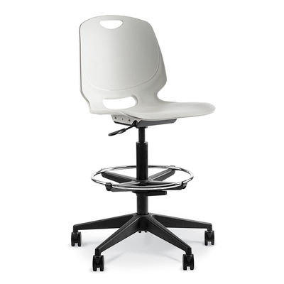 Polyprop shell on Black nylon five star castor base with swivel, gas height adjustment and adjustable footring.