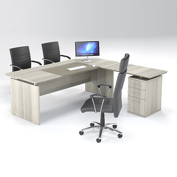 Desk with Inlay and L-Extension, 3 Drawer Pedestal on Silver Node