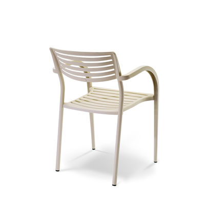 Stackable gas injection polyprop monobloc suitable for indoor and outdoor use. Subtle woodgrain effect incorporated into the moulding. Upholstered seat panel optional