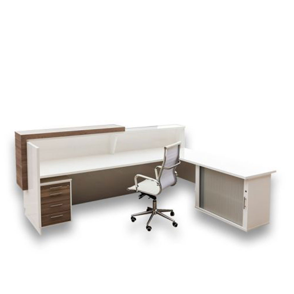 Reception Counter (Melamine) with Desk Height Pedestal & Sliding Door Credenza