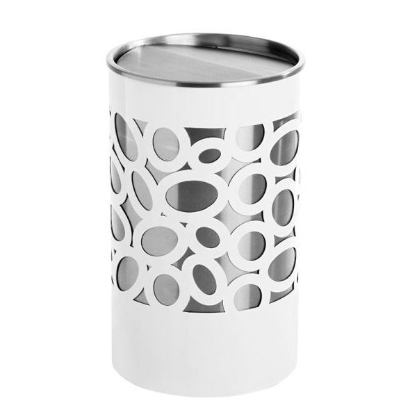White Body with pattern, Stainless Steel Sleeve, Stainless Steel rim Lid with full swivel