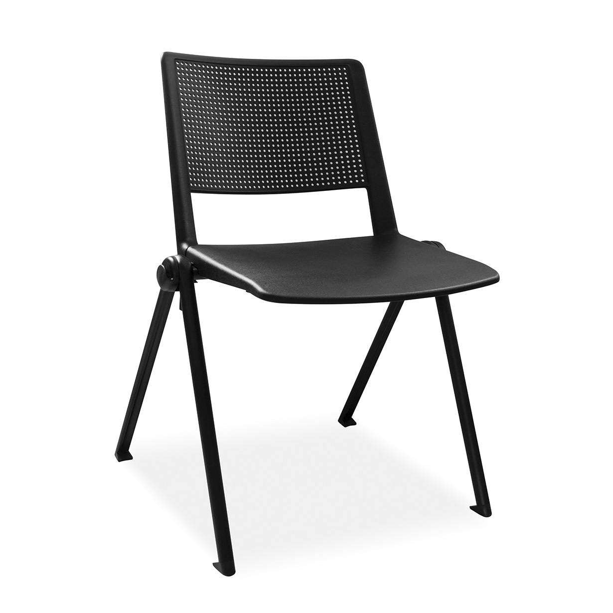 Black Plastic perforated Back with solid Plastic Seat Black Powder Coated Frame Standard without Arms No Option Interlinking Seats Stackable to approximately 18
