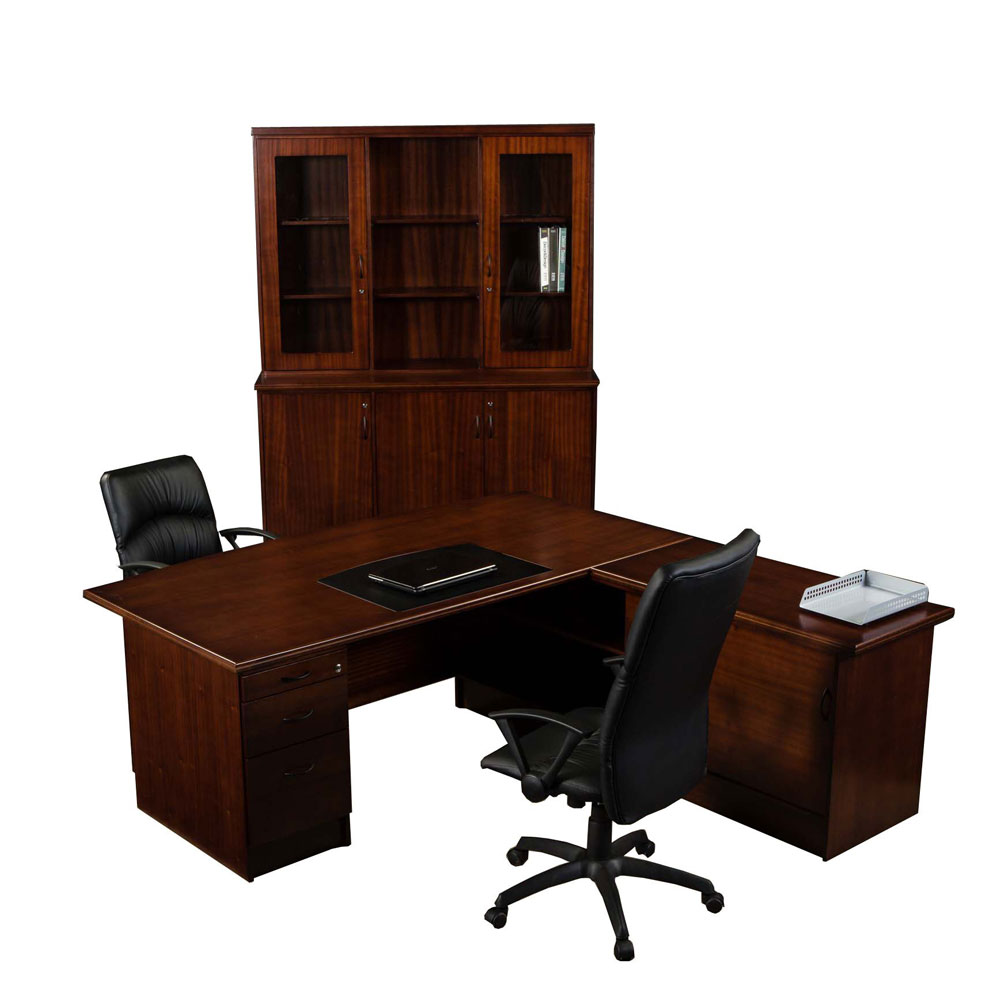 Curve Executive Single Pedestal L Combination Desk with CPU Unit & Sliding Door Credenza